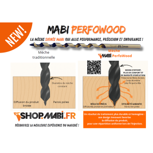 La MABI PerfoWood est une mèche professionnelle spécialement conçue pour le perçage du bois dans le cadre du traitement contre les insectes xylophages et les champignons lignivores.